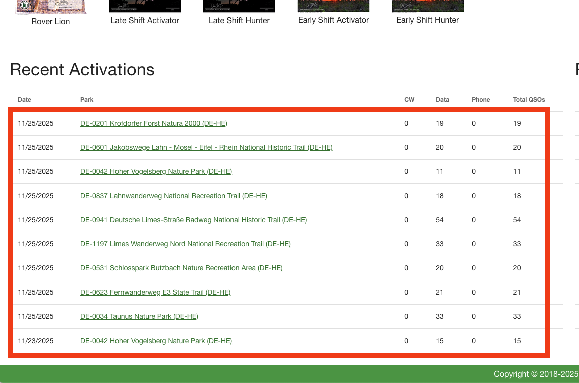 The issue of missing activations is well-known, and it’s mainly due to the fact that we can’t get more than the last 25 activations from pota.app. For very active activators like yourselves, this means we can’t get the history from the beginning of the season (October 1st).